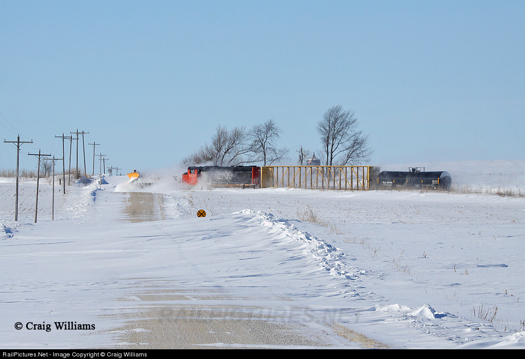 10 miles south of Manchester, the Cedar Rapids local rolls south plowing the branch out from the last winter storm. L563 has a wedge plow and a couple cars as they make their way south of Ryan. I had a hard time getting to photo spots today, as you can see the roads were not plowed in many spots!
