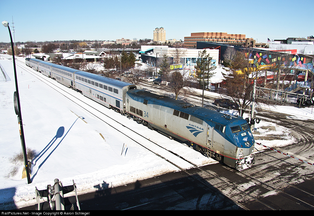 RailPictures.Net Photo: AMTK 34 Amtrak GE P42DC at Battle Creek, Michigan by Aaron Schlegel