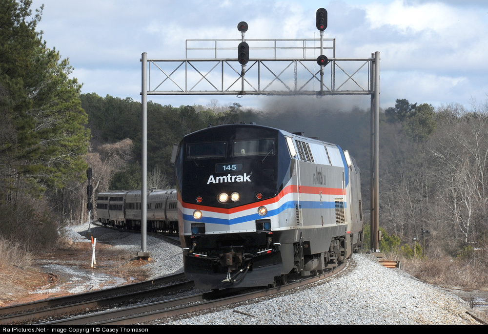RailPictures.Net Photo: AMTK 145 Amtrak GE P42DC at Temple, Georgia by Casey Thomason