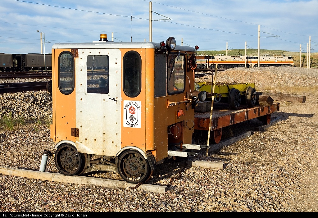 Tucked away at Blue Mountain Energy's Deserado Mine, the east end of the Deseret Power Railway, is this old speeder used by maintenance-of-way forces. The logo on the flank remains that of Western Fuels - Utah, Inc., the original operator of the mine, railroad and Bonanza Power Plant. In the background, the morning train is a dozen or so cars into the loading process, though on this day departure would be delayed until nearly Noon after the shop crew decided to spend a few hours repairing brakes on the coal cars. Photo from railroad property taken with permission.