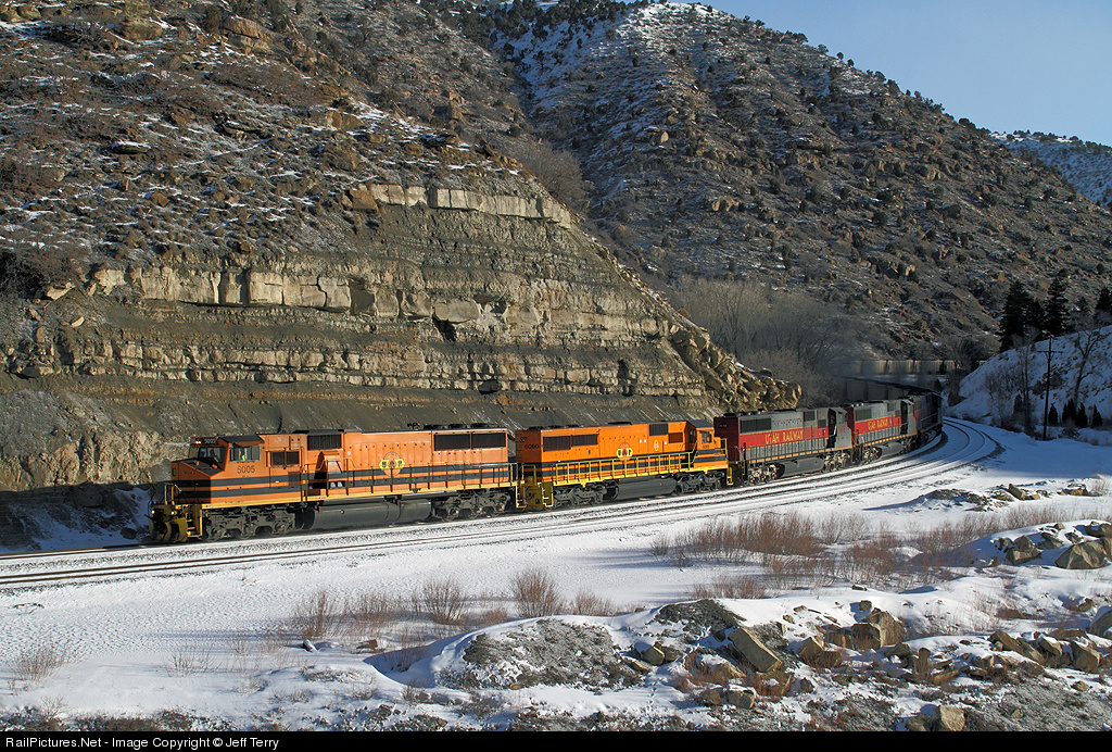 Orange you glad you got up early? A pair of G&W-orange Utah Railway units lead a loaded IPPX coal train out of Helper bound for Provo at first light. Utah 5005 is the only MK50-3 in orange, along with two of the Utah's SD60s.