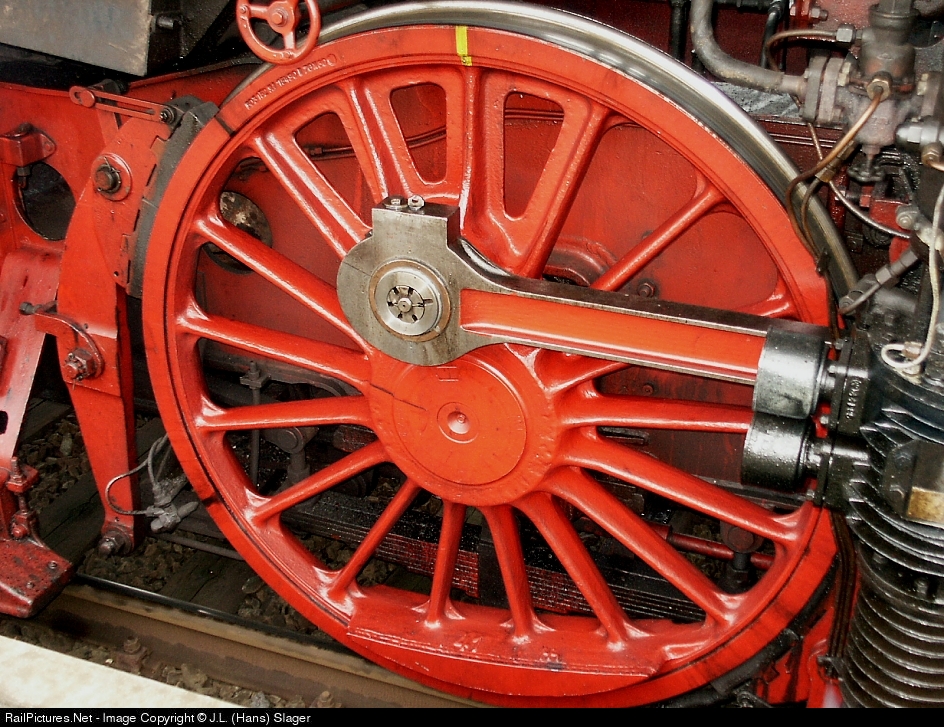 | One of the mainwheels of ex Deutsche Bundesbahn steamlocomotive 23 023 from the SSN one of the Dutch museum-organizations during the steamfestival "Dordt In Stoom" |