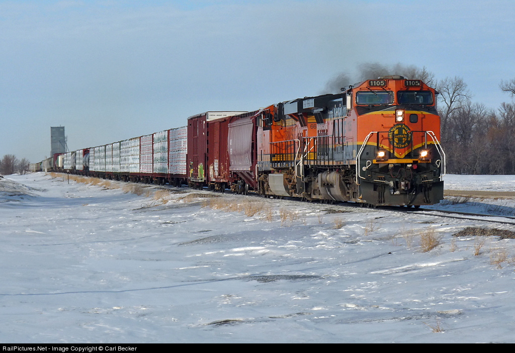 RailPictures.Net Photo: BNSF 1105 BNSF Railway GE C44-9W (Dash 9-44CW) at Merrifield, North Dakota by Carl Becker