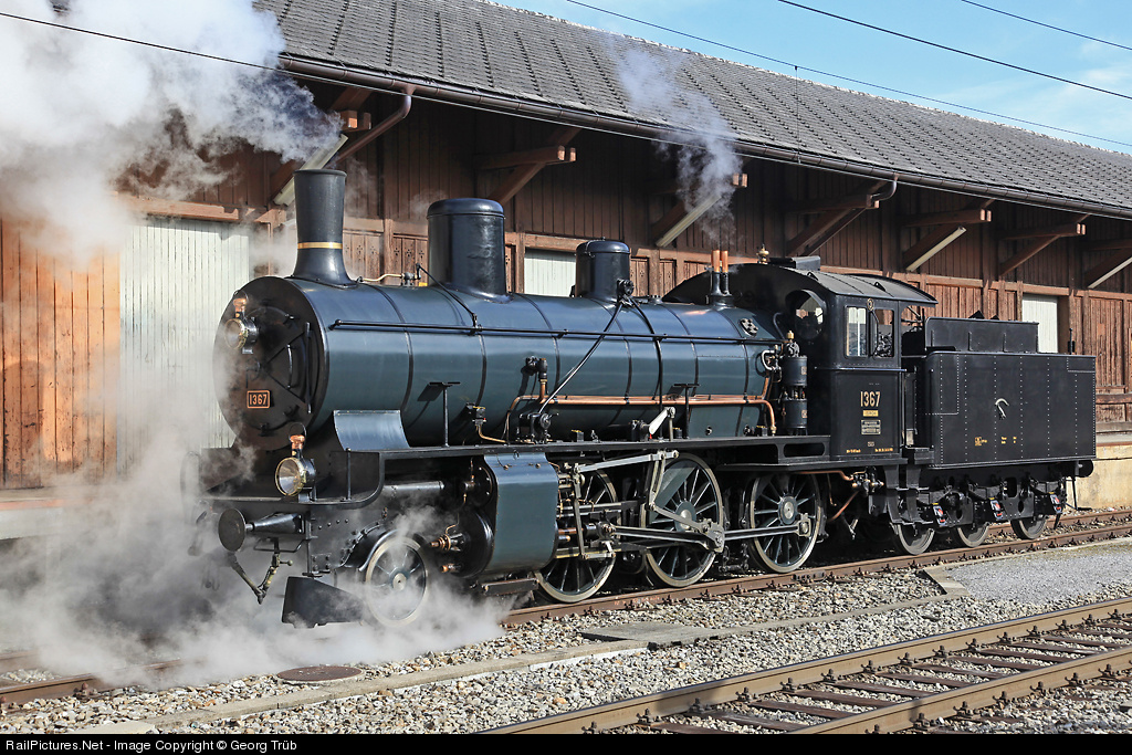Since august 1978 the beautiful "Mogul" (2-6-0) B 3/4 1367 is operational as historic steamlocomotive for SBB respectively SBB Historic, based in Brugg (AG) nowadays. It was built in 1916 by SLM Winterthur for passenger and light freight service on branch lines. The locomotive has the same boiler and power as the "Habersack" tank engine Eb 3/5 http://www.railpictures.net/viewphoto.php?id=247476