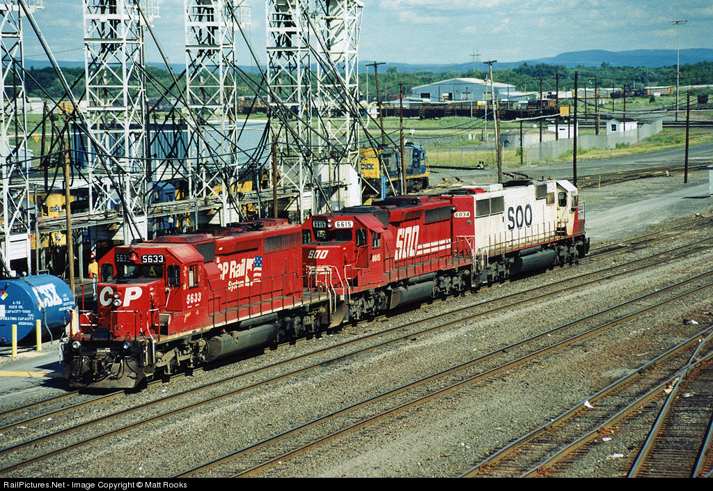 Power from the DH train 552 which use to run from Montreal - Selkirk, NY. CP 5633, SOO 6615, SOO 6034
