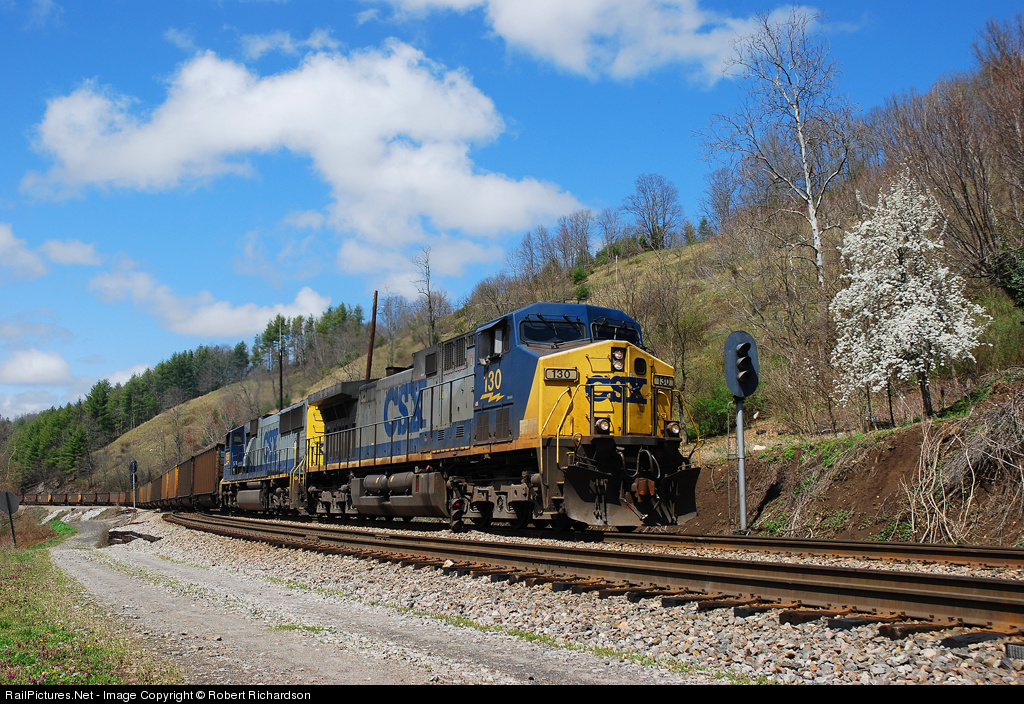 Spring has finally come to the mountains of NC, as a Pear tree is in full bloom, and green is poping out all over the hill sides. A SB CSX loaded coal train occupies the north end of the siding at Green Mountain, NC heading for a southeast power utility.