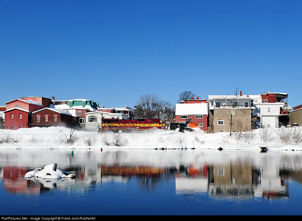 Farnham-Megantic Snow Plow Extra, reflects in Lake Memphremagog as it rolls through town