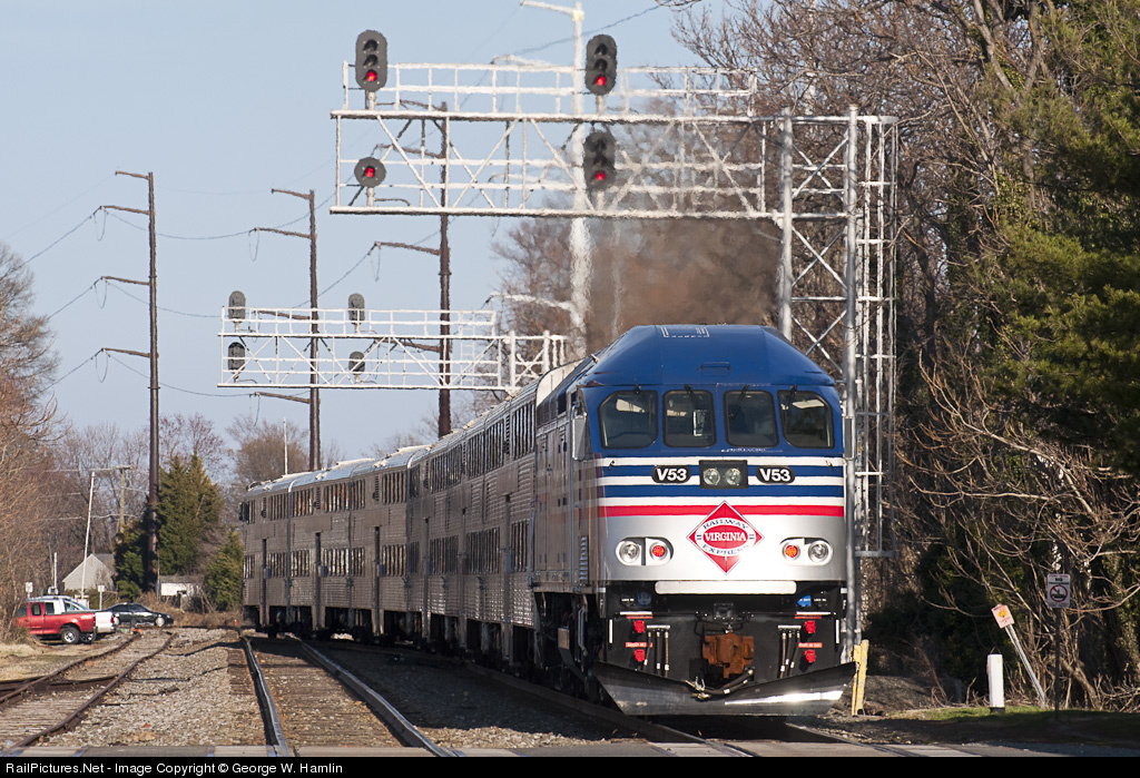 RailPictures.Net Photo: VRE V53 Virginia Rail Express (VRE) MPI MP36PH-3C at Manassas, Virginia by George W. Hamlin