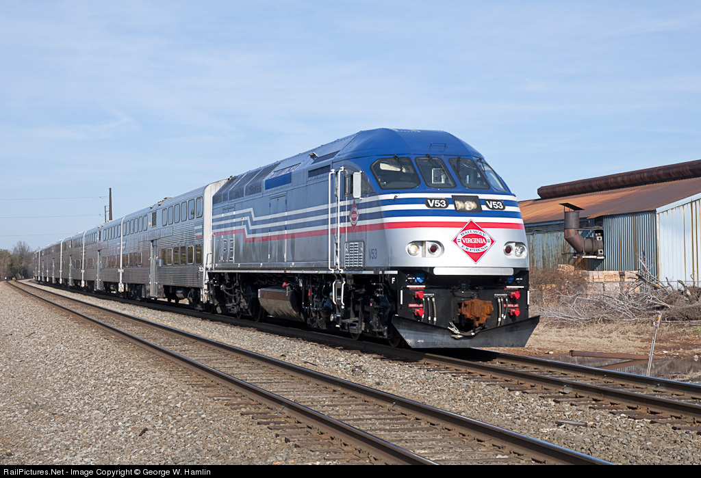 RailPictures.Net Photo: VRE V53 Virginia Rail Express (VRE) MPI MP36PH-3C at Manassas, Virginia by George W. Hamlin