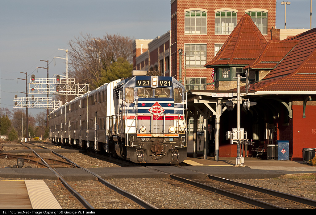 RailPictures.Net Photo: VRE V21 Virginia Rail Express (VRE) GP40-2C at Manassas, Virginia by George W. Hamlin