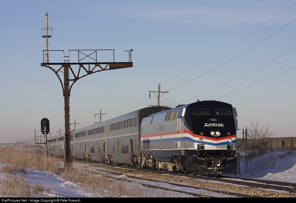 RailPictures.Net Photo: AMTK 145 Amtrak GE P42DC at Lexington, Illinois by Pete Ruesch