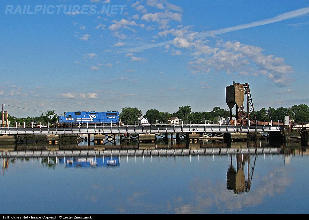 | In visits past, Q yellowjackets handled switching moves. I am glad I had the chance to catch them. These days this Conrail Geep 38 heads off to move baretables. A whole lotta blue in this shot. |