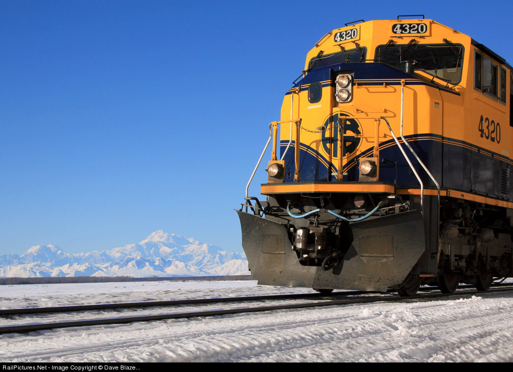 The Great One - That's the common interpretation of the native Athabaskan name for Mt. McKinley, North America's highest mountain at 20,320 ft. in elevation. On a clear day the mountain can be seen in Anchorage 150 miles to the south and in Fairbanks 150 miles to the north and at many other point in between along the route of Alaska's own railroad. Nowhere is the view more spectacular than in the Talkeetna area where the summit is less than 40 miles distant as the crow flies. Here the ARR's southbound weekly passenger train, the Aurora, has paused to give the lucky visitors a spectacular view across the frozen Big Susitna River. This is what visiting Alaska and riding the Alaska Railroad is all about!Note: the photographer is a railroad employee with permission to be on the property and was wearing all required PPE while taking this photograph.