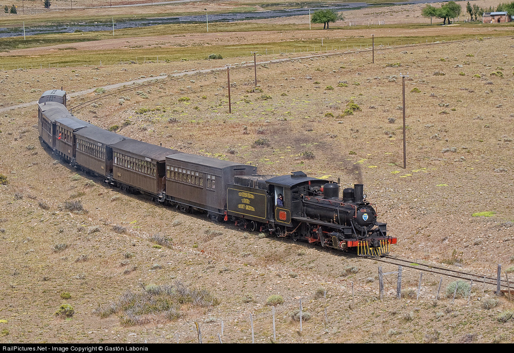 Baldwin 2-8-2 (1922), arriving Nahuel Pan Station. This tourist railway is call "La trochita" (very narrow gauge), because of his 75 cm. gauge. Originaly was created as a economical railway. In Ferrocarriles Argentinos era, belongs to Ferrocarril Roca.