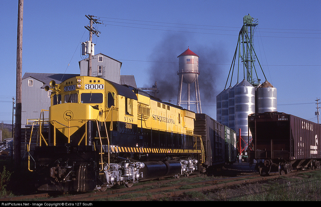 A northbound NYS&W local freight was working a feed mill at Norwich, NY on May 13, 1983 with C430 No. 3000. If I recall correctly, at this time, this train working the Utica line went on duty at Binghamton in the late afternoon and gave one several hours of good shooting before the sun set.