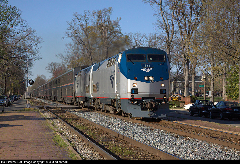 RailPictures.Net Photo: Amtrak 818 Amtrak GE P42DC at Ashland, Virginia by C Middlebrook