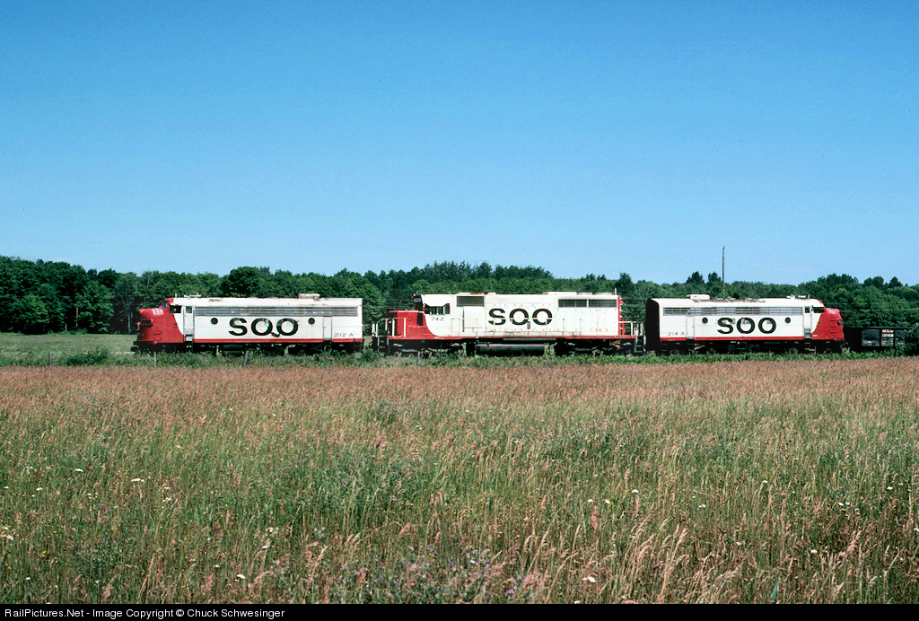 RailPictures.Net Photo: Soo 212A Soo Line EMD F7(A) at Trout Lake, Michigan by Chuck Schwesinger