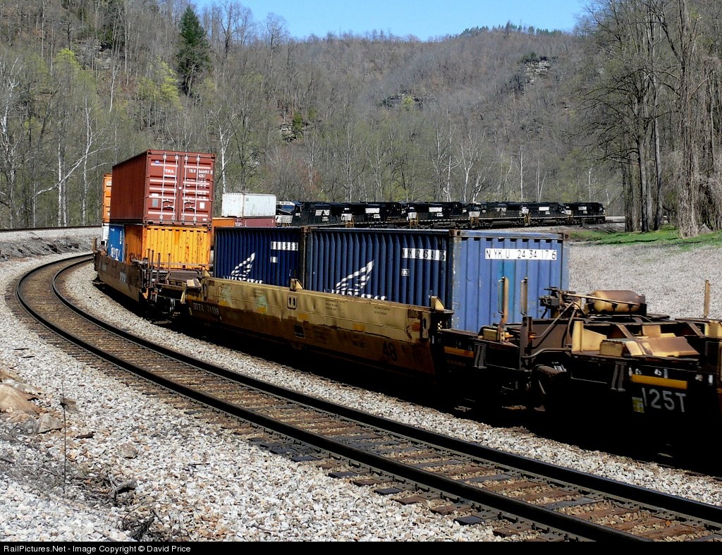 Logistics? Heavy duty power leads NS 233 through the tight turn at OO to deliver doublestacks through the recently completed Heartland Corridor Project along this stretch of the Pokey.