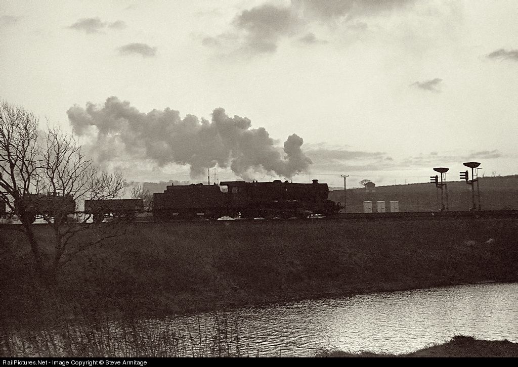 At the dawn of 1968 it was still possible to see an occasional steam locomotive on main line workings. The Calder Valley seemed a particularly privileged location to live because elsewhere in much of Britain it was already a memory. I think this image of a work-weary ex-LMS '8F' 2-8-0 heading westward along former Lancashire & Yorkshire Railway metals into the dusk is rather poignant of those final months. Steam, which we thought would last forever, did not even see out the year.
