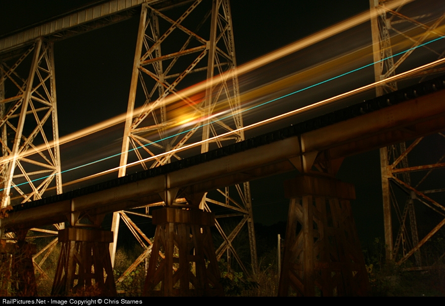 Pusher engines crossing NS's Copper Creek trestle, illuminating CSX's bridge