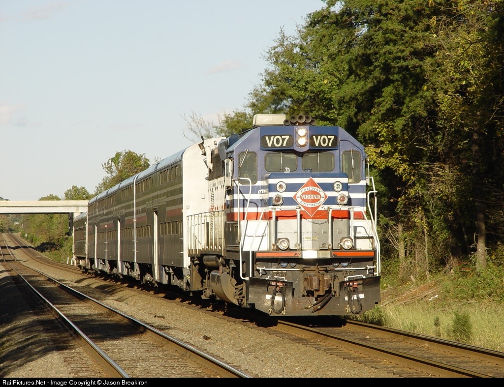 RailPictures.Net Photo: V07 Virginia Rail Express (VRE) EMD GP39-2C at Manassas, Virginia by Jason Breakiron