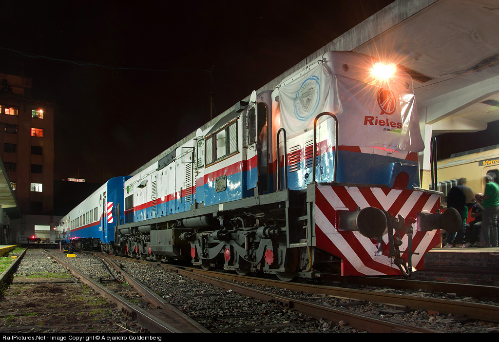 | Special train organized by Rieles magazine is ready for departure at 9pm. to Paraná ( Entre Ríos province) with one Tourist class and one luggage coach. The locomotive belongs to UEFER, a passenger service company from Entre Rios. |
