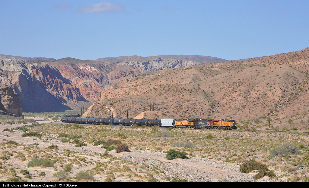 Ethanol empties follow a mixed bag of GE locomotives east out of Afton Canyon, following a 50-mph wind east.