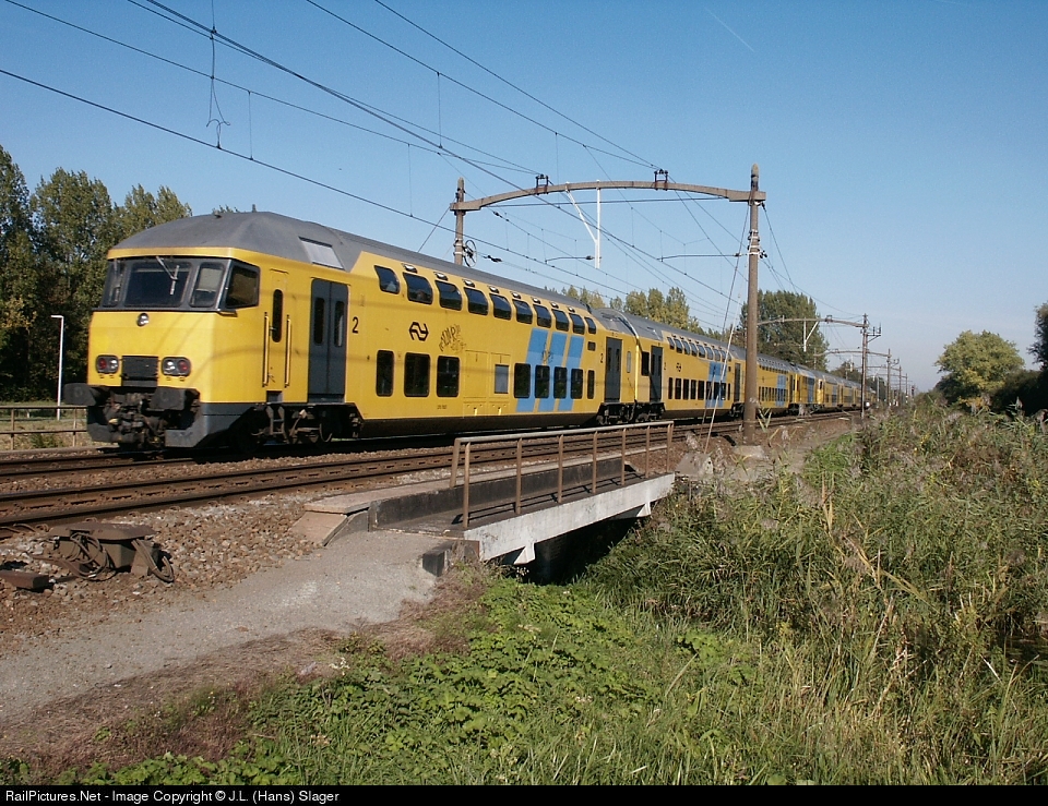 Two coupled double-deck trainsets on the move from Amsterdam to Breda here seen at Dordrecht Zuid Kilweg