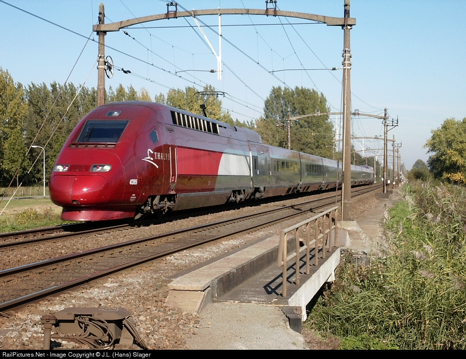 | Seen at Dordrecht Kilweg, high speed trainset Thalys 4305 as a train from Amsterdam to Paris France |