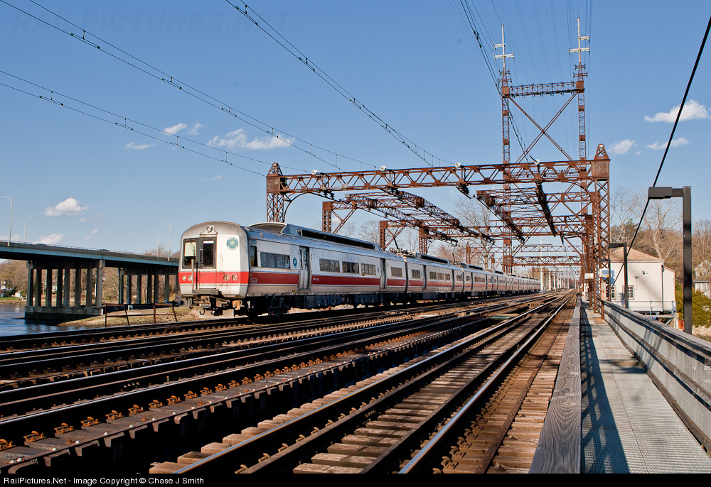| A Metro North express to Grand Central crosses the Saugatuck River, Westport, CT.