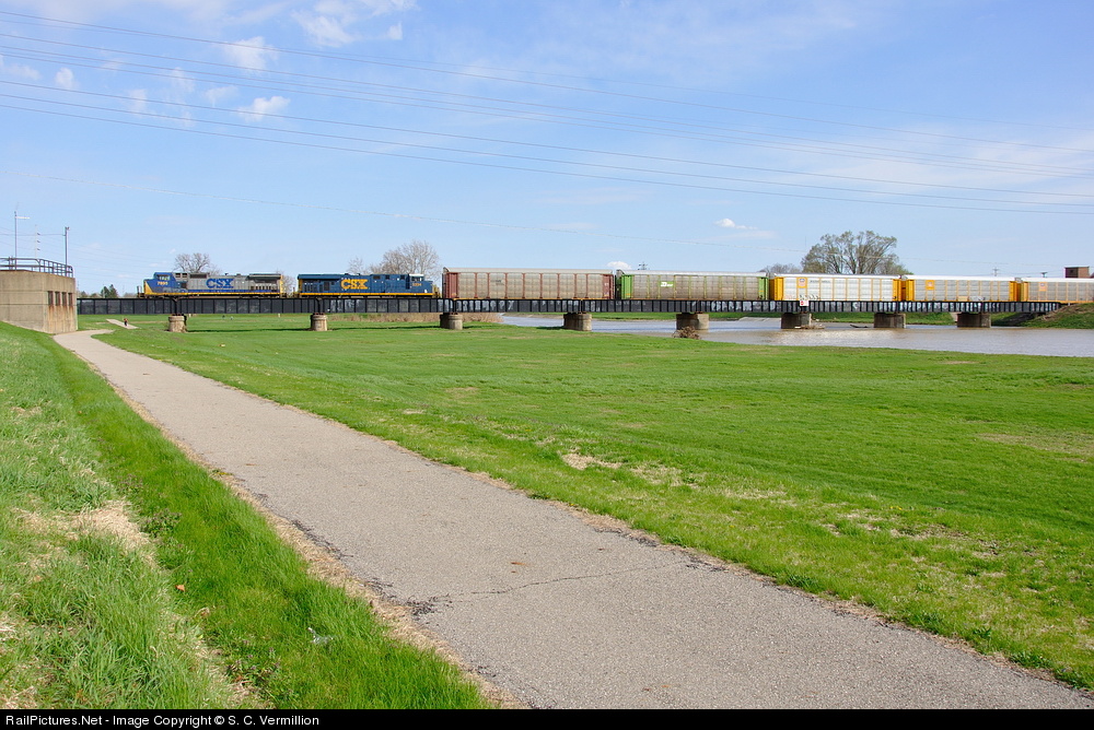CSX autorack train crossing the Great Miami River at Troy, Ohio.
