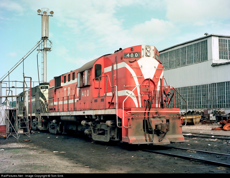 TPW RS-11s #400 and #401 rest at East Peoria, IL || June 1975