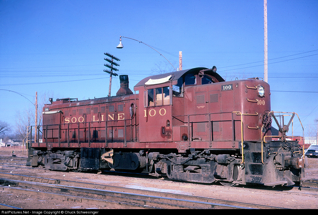 | Soo 100 was an ex DSS&A unit and is working the yard in Stevens Point. The slide is in my collection but has no photographer on it. If anyone knows who took the shot feel free to add the info. in the comments section. |