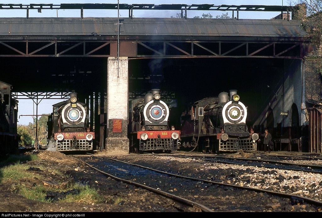 Ancient British built power at Malakwal shed in Pakistan. SPS 4-4-0s 2985 and 3165 share the depot with an unidentified SGS 0-6-0. All are 5 feet 6 inch gauge and oil fired.