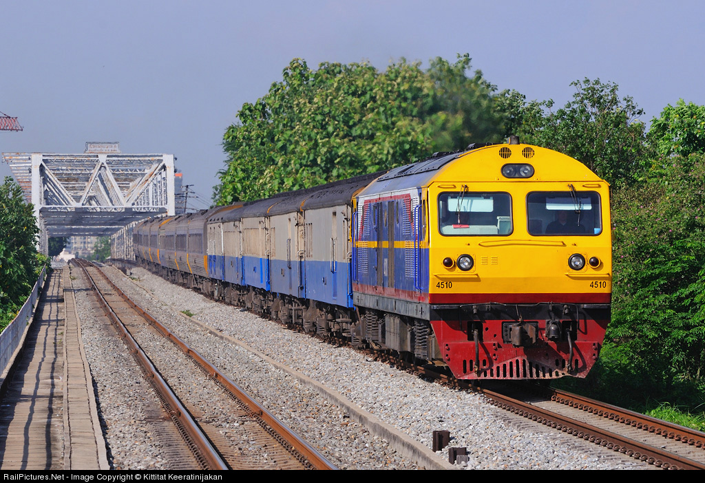 | Hitachi 8FA-36C No. 4510, with a new color scheme, heading the International Express from Bangkok to Butterworth. |