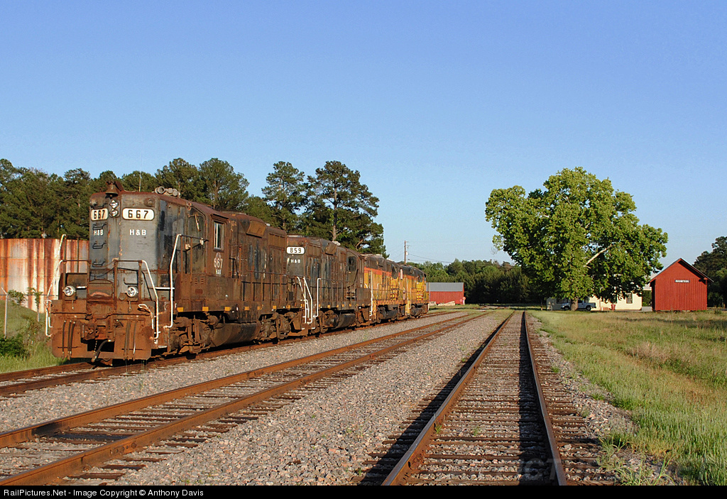 RailPictures.Net Photo: H&B 667 Hampton & Branchville EMD GP9 at Hampton, South Carolina by Anthony Davis