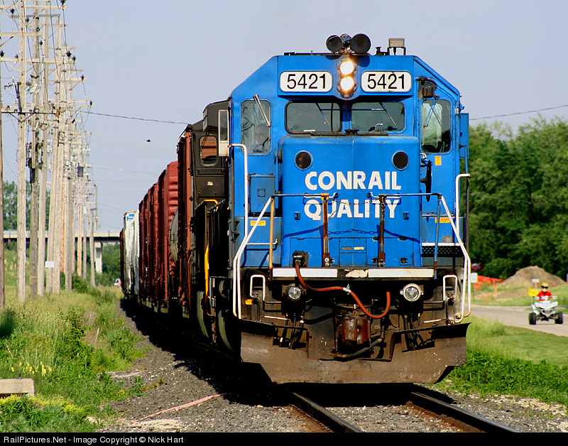 31K holds short of the connection track, with a Conrail in charge.