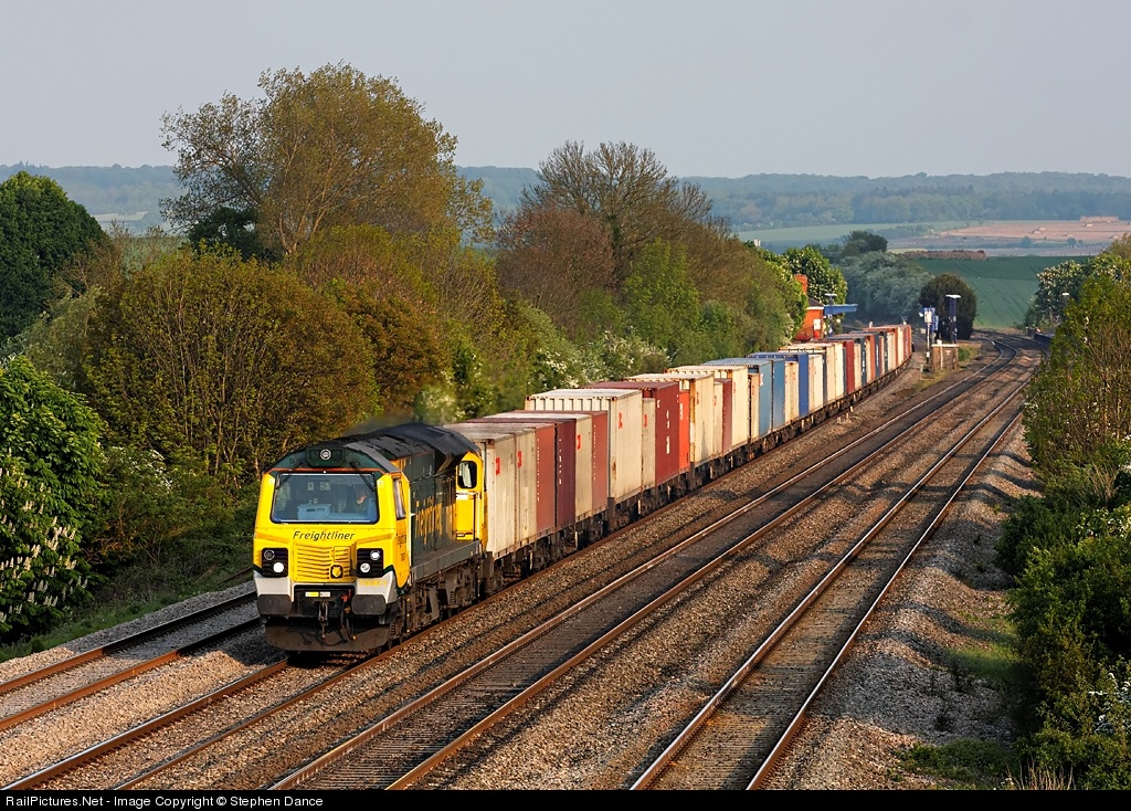 | GE built 70001 powers past Cholsey with a well loaded 4M99, Southampton - Trafford Park intermodal service on a cool, but sunny spring evening. Surprisingly, I had this vantage point to myself