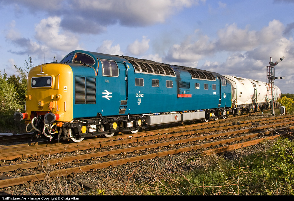| 55022 rounds the curve at Marcheys House in the evening sun with 6N69 loaded Alcan tanks from North Blyth to Lynemouth. The loco has been hired by GBRf to temporarily operate the North Blyth Alcan trip working. |