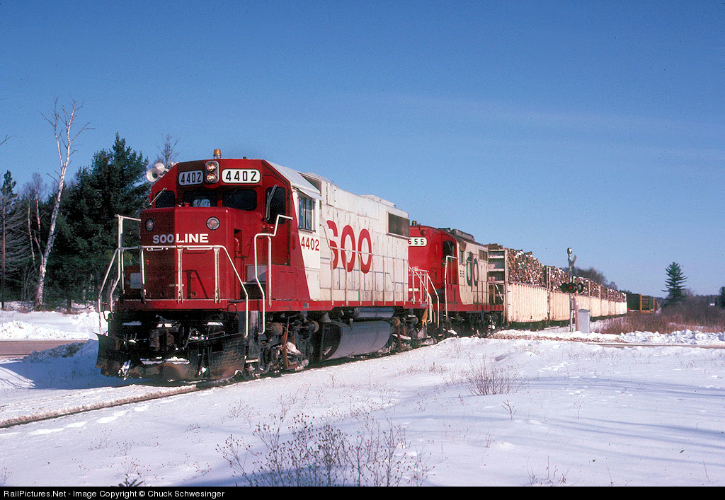 RailPictures.Net Photo: Soo 4402 Soo Line EMD GP38-2 at Gilchrist, Michigan by Chuck Schwesinger