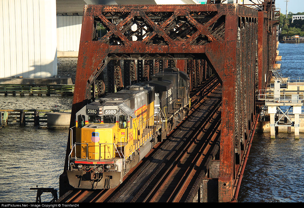 HLCX 5980 and NS 8688 crossing Jacksonville Drawbridge.
