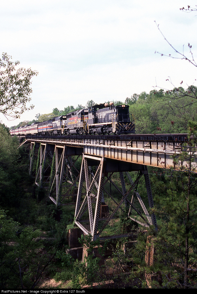 This should probably fit into the "strange, but true" category. Northbound Auto Train AT-4 was crossing the South Anna River near Taylorsville, VA on April 29, 1981 behind RF&P SW1500 No. 91, L&N GP40-2 No. 6611, RF&P GP35 No. 136 and Amtrak E8A No. 417. By this time, things had gotten really bad at Auto Train. Most, if not all of their units were out of service and they were relying on power supplied by RF&P, SCL and Amtrak. Amtrak supplied a few E8As that were pulled from the dead line and only one of the two prime movers in the units actually ran. There were just two days left for the operation and RF&P SW1500 No. 91 was being sent to Lorton to switch the train and also to switch cars after the shutdown. It was a sad time for all.