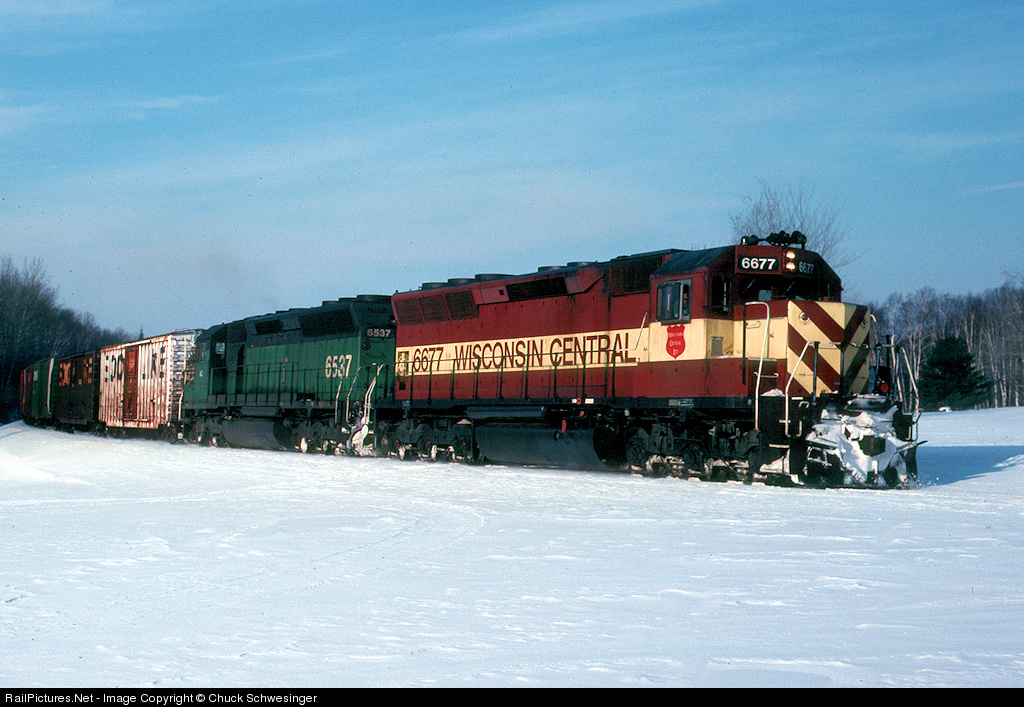 RailPictures.Net Photo: WC 6677 Wisconsin Central EMD SD45 at Trout Lake, Michigan by Chuck Schwesinger