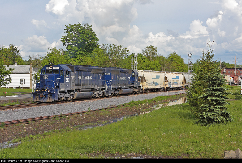 East Deerfield, MA to Mohawk Yard, NY mixed freight rolls thru the new, under construction, CPF-468 at 4:42PM. The new signals can be seen behind the power. After a week of rains, yet more storms can be seen brewing to the east. PAR SD40-2 MEC 609 trails. The lead unit is a remanufactured SD45, formerly SP 9076, SP 7489, HATX 915, HLCX 6413. It ran on Pan Am for a number of years as HLCX 6413 before purchase.
