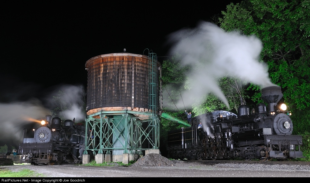 Cass scenic railroad railfan weekend night shoot has Shay 11 getting water and WM Shay 6 waiting it next assignment.