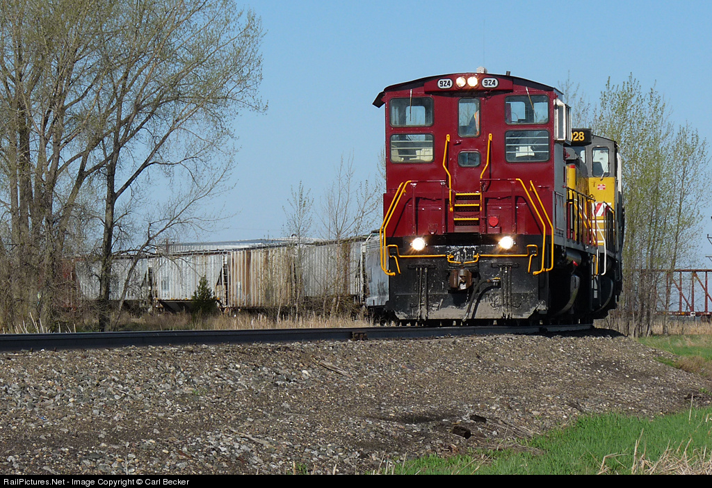 | The two newcomers to the Minnesota Northern switching fleet roll back toward the yard along the south leg of the wye with a set of cars just collected off of the Ada Subdivision. ILSX 924 was previously BNSF 3437, and ILSX 928 was previously UPY 1195. |