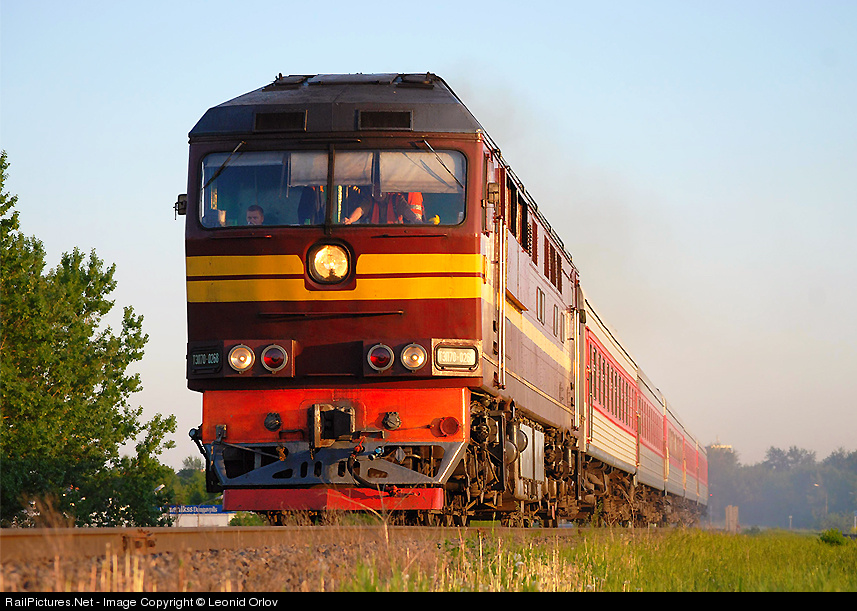 Latvian locomotive TEP70-0268 with lithuanian passanger train: Vilnius - St.Peterburg.