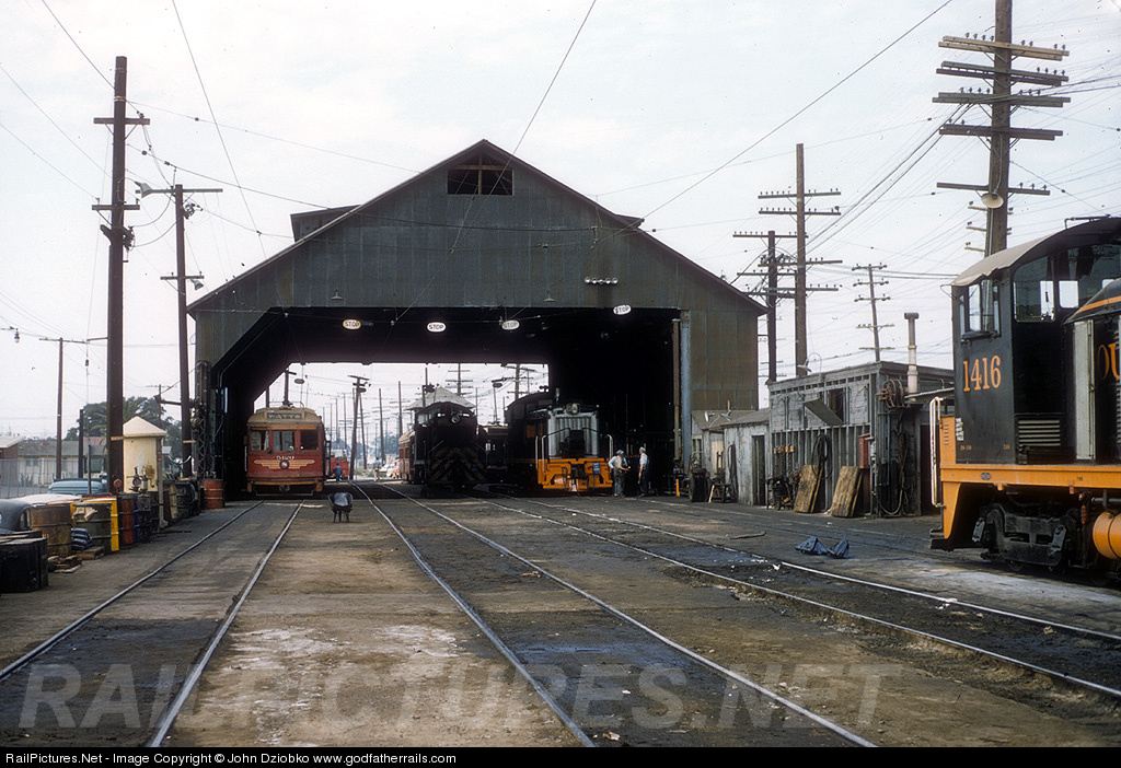 The car barn and contents, Sept. 1957, at Graham Yard. Watts local car on the left. Graham yard had SP switchers to handle the Firestone plant, one of the industries served out of the yard. For an overview of the San Pedro-Long Beach line and nifty tour, click here.