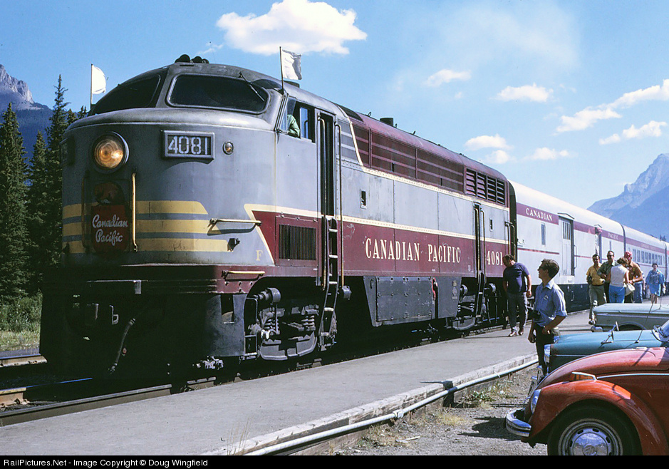 Our model railroad convention in Calgary, AB in August of 1971 featured an excursion with CPR C-Liner 4081 from Calgary to Field, BC. Here it is stopped at Banff, AB for a photo opportunity. CLC units were rare on passenger trains at this time so we enjoyed the chance while it lasted.