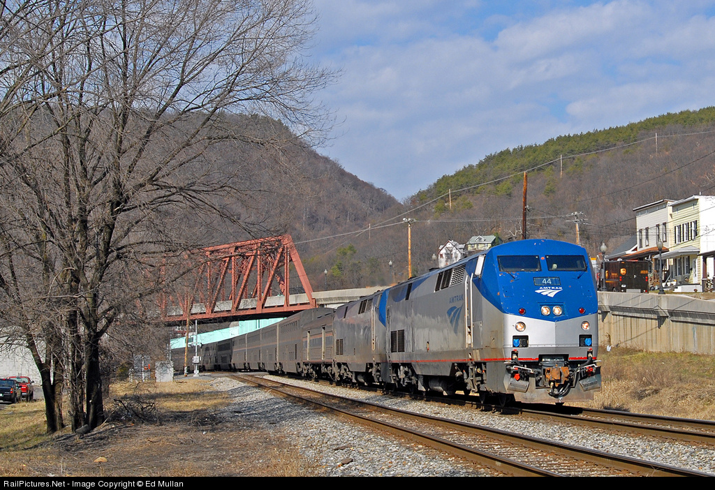 | The on-time Capital Limited is near it's stop at Cumberland, with eight of the dirtiest passenger cars I think I've ever seen! |